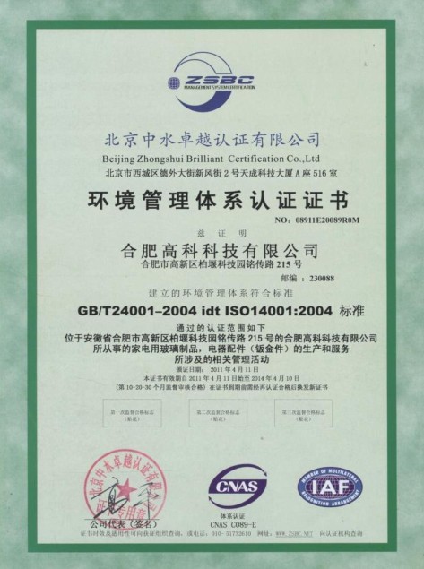 環境管理體系認證證書