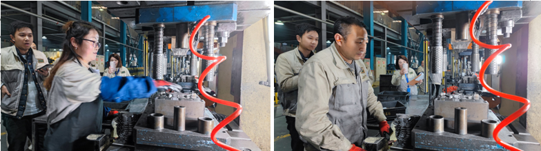 鈑金制一部本次技能大賽的比賽項目有:4298梁組裝打螺釘、2177梁貼海綿、0776中梁鉚合、沖壓、點焊、電焊、叉車碼料、以及小磨床沖子研磨。比賽的規則是:前七項是在規定的時間內,完成的數量多少并保障良品,則判為勝,小磨床沖子研磨的規則是:按圖研磨,尺寸符合要求并用時最短者為勝,每組比賽各有5人,比賽不僅展示的個人技能,更主要的是小組之間的配合與默契,神隊友的助攻,將是取勝的關鍵。參賽者們都鉚足了勁,躍躍欲試,整個比賽場面雖然非常驚心動魄,但每組隊員都穩扎穩打,讓我們一起來欣賞他們的風采。