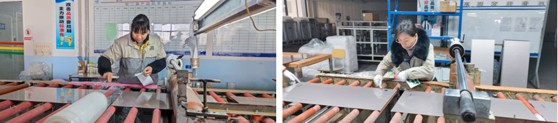 彩晶事業部參加技能打比賽的項目是:自動線架板調機、包裝劃膜工序、切割掰片,一個小組三個人共同完成,上料、附膜、包裝,一氣呵成,在規定的時間內,以最后包裝完成為計數總量。